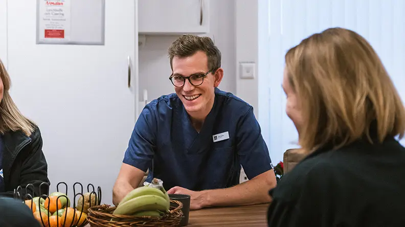 Jag jobbar på Capio Vårdcentral Vasastaden i Linköping som ST-läkare inom allmänmedicin. Det är en nyöppnad vårdcentral som är utvecklad rent lokalmässigt på ett annat sätt än den traditionella vårdcentralen. Den är liten och vi läkare sitter tillsammans i ett öppet kontorslandskap. Det är en lugn och behaglig arbetsmiljö med korta beslutsvägar, vilket bidrar till en bättre sammanhållning oss emellan och inger trygghet hos patienterna. Vi har bra bemanning och hög kompetens hos personal i alla yrkeskategorier – sjuksköterskor, läkare, kuratorer, dietister, fotvård och BVC. Vi är organiserade i olika team för att kunna anpassa vården efter patienternas behov, så som diabetesteam och astmateam.