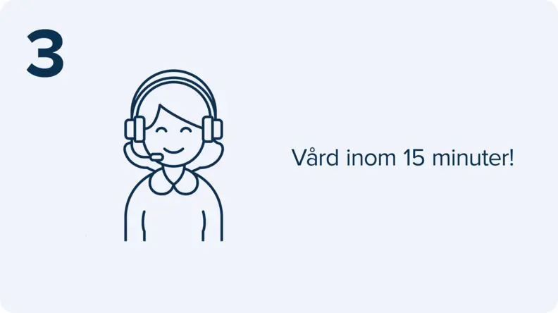 När en sjuksköterska eller läkare finns tillgänglig kontaktar vi dig inom 15 minuter – oftast snabbare.