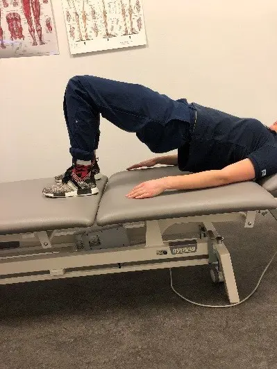 Ligg på rygg och lyft upp rumpan. Bromsa rörelsen påväg ned. Upprepa 10x3