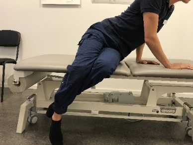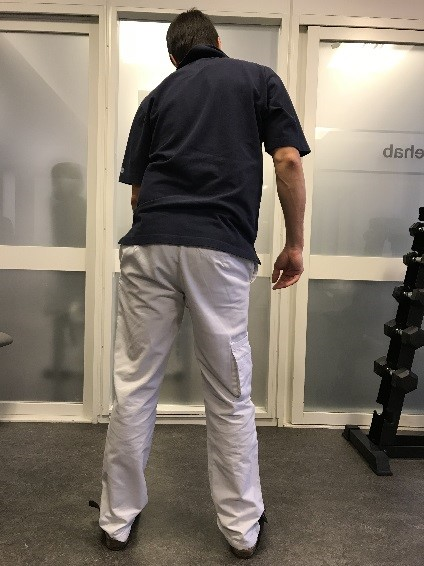 Såhär kan en typisk hållning i stående se ut tidigt i skedet. Som tidigare nämnt är detta helt normalt och ofarligt för kroppen. När smärtan avtar är det dock viktigt att återgå till ett normalt rörelsemönster.