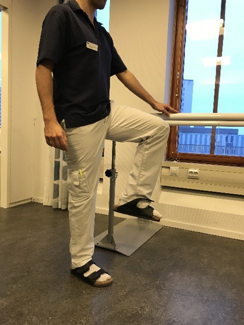 Övning 1: Stå med rak rygg och försök lyfta ett knä mot magen. Håll 10 sekunder. Upprepa sedan med andra benet. Utför tre lyft med varje ben, 5-10 gånger/dag.