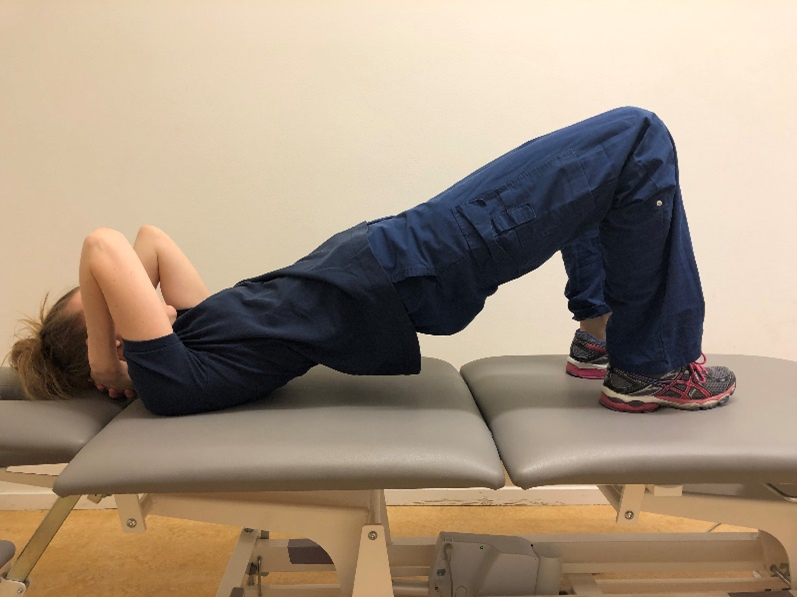 Övning 2: Ligg på rygg och lyft upp rumpan. Upprepa 8x3