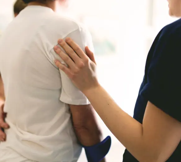 Patienter som har sjukhusvårdats på grund av covid-19 kan drabbas av kortvariga- eller långvariga komplikationer, såsom skador eller inflammation i lungor, hjärta, extrem trötthet, muskel/ledsmärtor, kognitiv försämring som påverkar minne eller koncentration, diarréer, påverkan på centrala eller autonoma nervsystemet, blodproppar, eller psykiska besvär som ångest eller depression.