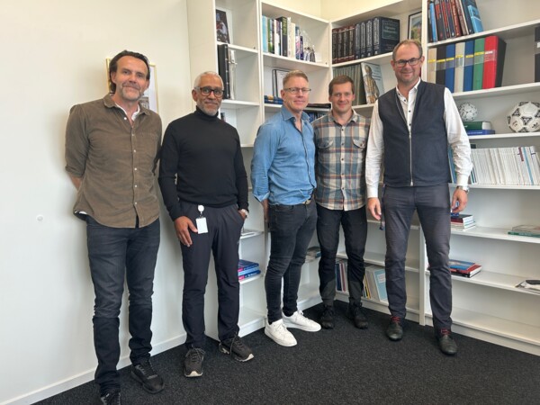 Idag samlades några av medlemmarna i Capio Ortopedis rådsgrupp för knäartroskopi på Ortho Center Skåne för den årliga sammankomsten. Gruppens arbete syftar till att utveckla samarbete och samsyn kring omhändertagandet av patienter med knäskador inom området "artroskopisk knäkirurgi" vilket översiktligt innefattar knäligamentskador, knäskålsinstabilitet, menisk- och broskskador samt lätt-måttlig artros hos yngre patienter. Capio har en stor expertis inom detta område med flera ledande specialister på våra olika kliniker. Utöver det kliniska samarbetet diskuteras såväl utbildning som forskning vilket sammantaget stärker vår position som den främsta rikstäckande vårdgivaren inom detta viktiga område. På bilden ses från vänster Anders Stålman, Capio Artro Clinic, David Roberts, Capio Ortho Center Skåne, Mathias Ahldén, Capio Ortho Center Göteborg, Marcus Runsvik Nordstrand, Capio Movement och Markus Wahldén, Capio Ortho Center Skåne.