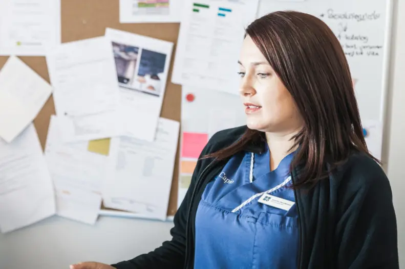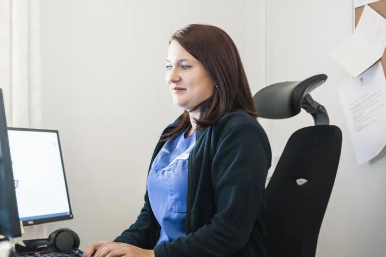 Jag är vårdadministratör och arbetar med dokumentation. I rollen skriver och sköter jag hanteringen av patientjournaler och avlastar sjukvårdpersonal med administrativa uppgifter.