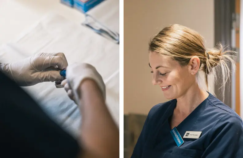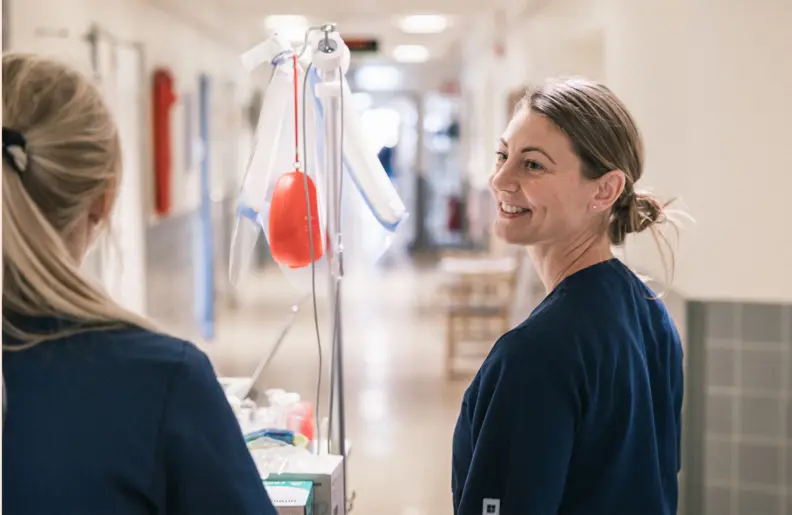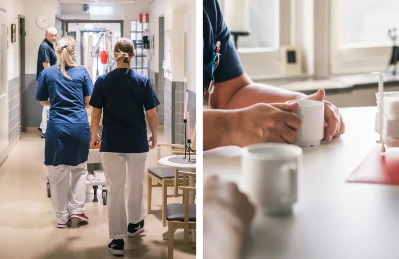 Jag jobbar som sjuksköterska sedan våren 2019. Som sjuksköterska på en vårdavdelning är du lite spindeln i nätet. Vi har mycket äldre patienter och samarbetar tätt med kommunen i förbindelse med hemgångar.