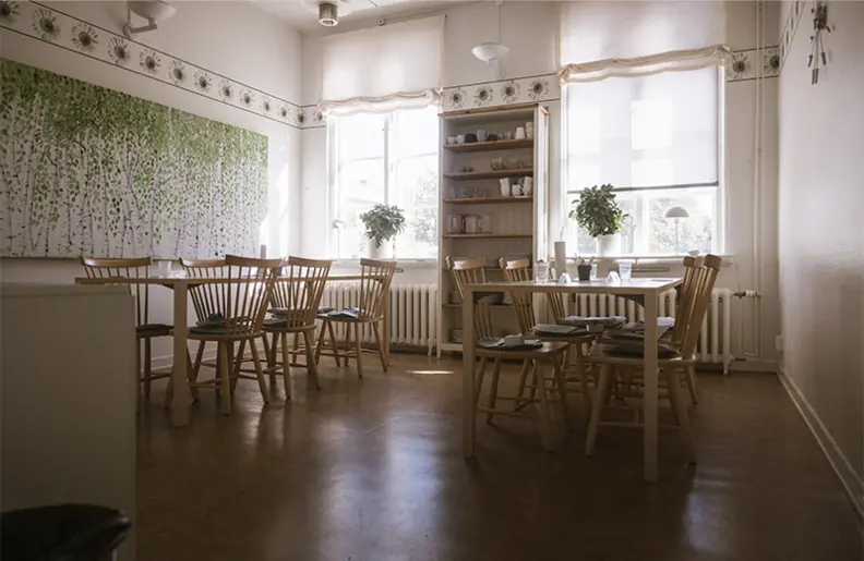 Vi är ett öppet behandlingshem som är högspecialiserade på ätstörningar. Det som är specifikt för den metod som vi arbetar enligt, KBT-E, är att den ska skilja sig åt från traditionell mer medicinskt inriktad behandling. Målet är att det ska vara en psykoterapeutisk behandling för patienten 24/7, där vi inriktar oss på att behandla de psykologiska mekanismer som håller ätstörningen vid liv. Miljön på behandlingshemmet ska också skilja sig från hur det ser ut på ett sjukhus. Vi vill att det ska vara en så hemlik miljö som möjligt, eftersom våra patienter ska bo här 5-6 månader och genomföra en tuff behandling. Så det är viktigt att de trivs och att även miljön är terapeutisk.