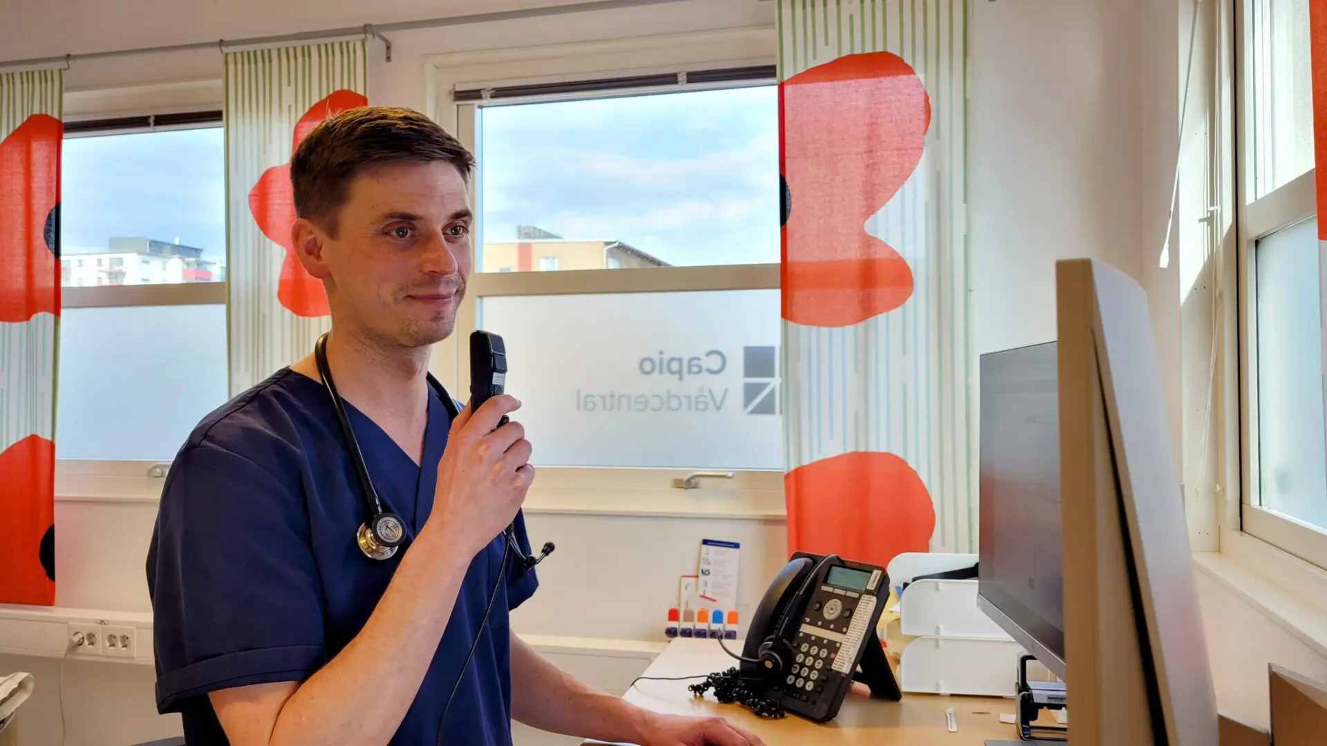 Klockan 9: Nu har patienterna börjat droppa in och min telefon börjar ringa. Mina läkare hör av sig om knepiga fall och om patienter som behöver remitteras till sjukhus. Jag träffar patienterna tillsammans med dem på kliniken där jag är och stöttar per telefon när det gäller patienter på vår andra klinik.