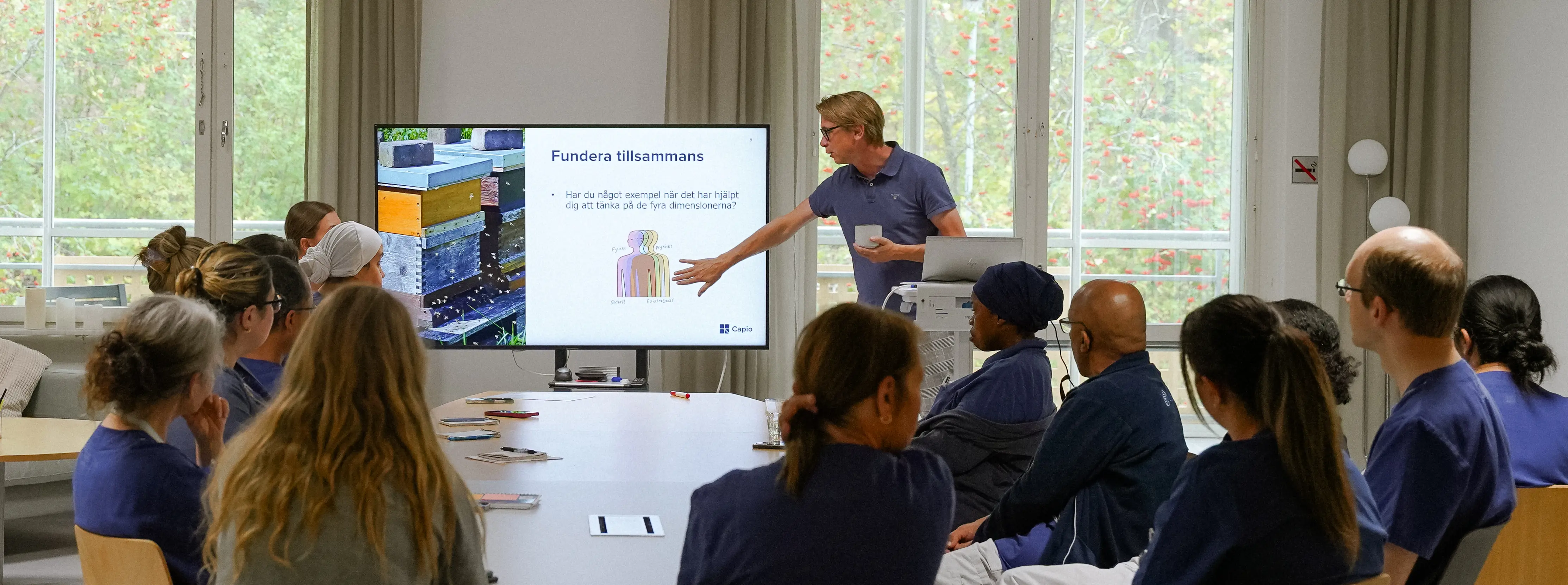 Varje workshop inleds med en 10 minuters utbildningsfilm, följt av en diskussion och reflektion kring fyra reflektionsfrågor som är kopplade till filmen. Träffarna leds av det palliativa ombudet och kunskapen hålls levande genom att de årsvis utförs regelbundet och återkommande.