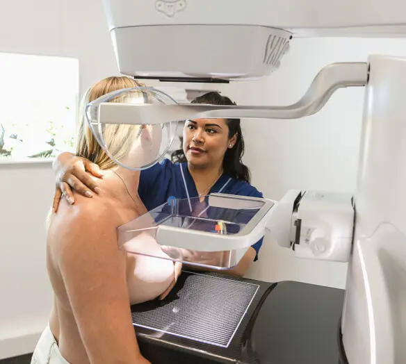 Båda brösten undersöks med mammografi som är en form av röntgen.