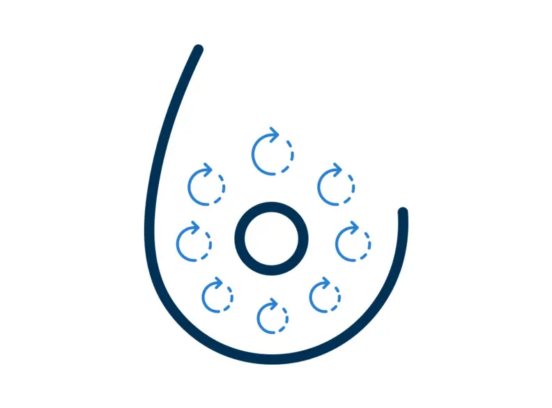 Gör små cirklande rörelser runt hela bröstet inklusive bröstvårtan. Använd raka fingrar och ett lätt tryck. Fortsätt tills hela bröstet är genomsökt.